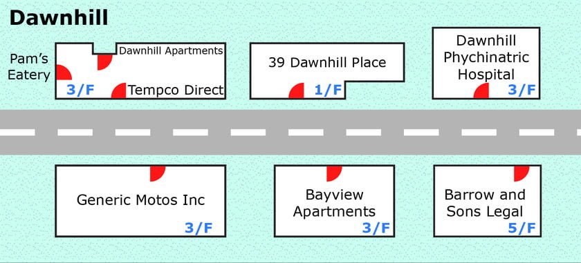 Berikut ini adalah peta dunia dari Dead Frontier 2. Anda bisa mengakses semua kota yang ada di dalam peta dengan cara berinteraksi dengan mobil yang telah disediakan lalu kemudian memilih opsi Travel. Saat ini ada 3 lokasi Outpost (zona aman) yakni Police Department di Dallbow (rekomendasi level 1), Memorial Hospital di Haverbrook (rekomendasi level 10) dan Star Hotel di Grey Wood (rekomendasi level 20).