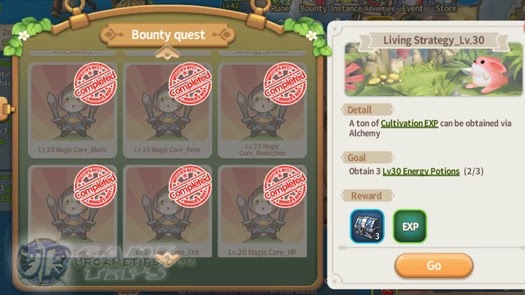 Selesaikanlah Bounty Quest jika anda masih memiliki sisa Cultivation EXP. Jika anda mengaktifkan satu Experience Enhancing Card, EXP yang anda peroleh disini akan digandakan. Quest dari Bounty merupakan salah satu aktivitas yang bisa anda kerjakan dengan cepat.