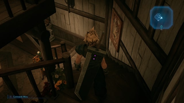 Setelah puas menjelajahi area Church dan stasiun kereta, masuklah ke dalam rumah Aerith untuk menyaksikan cutscene. Keluarlah menuju ruang utama dan usahakan untuk tidak berisik agar tidak ketahuan oleh Aerith. Arahkan dan goyangkan stik PS4 anda secara perlahan untuk mencegah suara berisik seminimal mungkin.