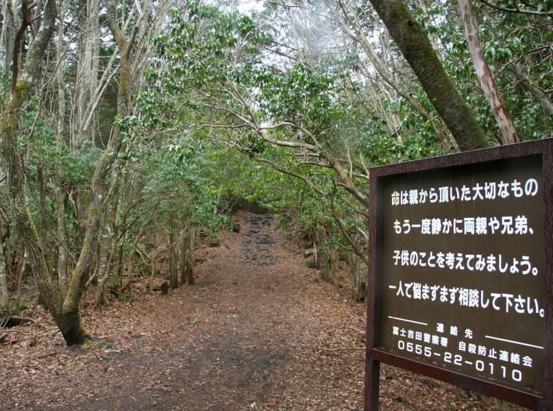 Hutan bunuh diri atau biasa dikenal dengan hutan Aokigahara bertempat di bawah kaki gunung Fuji. Meskipun hutan ini begitu lebat, beberapa mayat mudah ditemukan oleh para relawan pendaki gunung yang memang sengaja datang untuk mengumpulkan jenazah di sekitar area. Sekitar 10 hingga 30 jenazah ditemukan setiap bulannya.