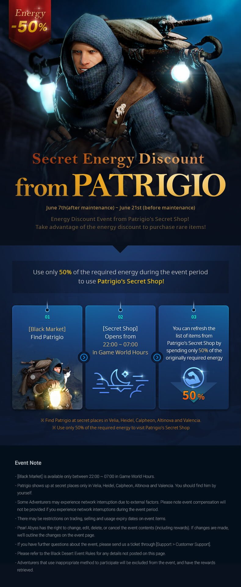- Gunakan kesempatan ini untuk menggunakan energi hanya sebesar 50% saja saat berada di Secret Shop milik Patrigio!