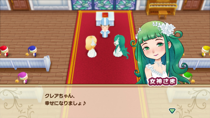 Karena hati Harvest Goddess tidak ditampilkan, rajin-rajinlah memberikan hadiah ke sang dewi. Jika anda rajin memberinya hadiah setiap hari, setidaknya di tahun kelima hati sang dewi sudah merah. Setelah semua persyaratan berhasil dipenuhi, pergilah ke Church hari Monday, Wednesday atau saat cuaca Rainy atau Snowy.