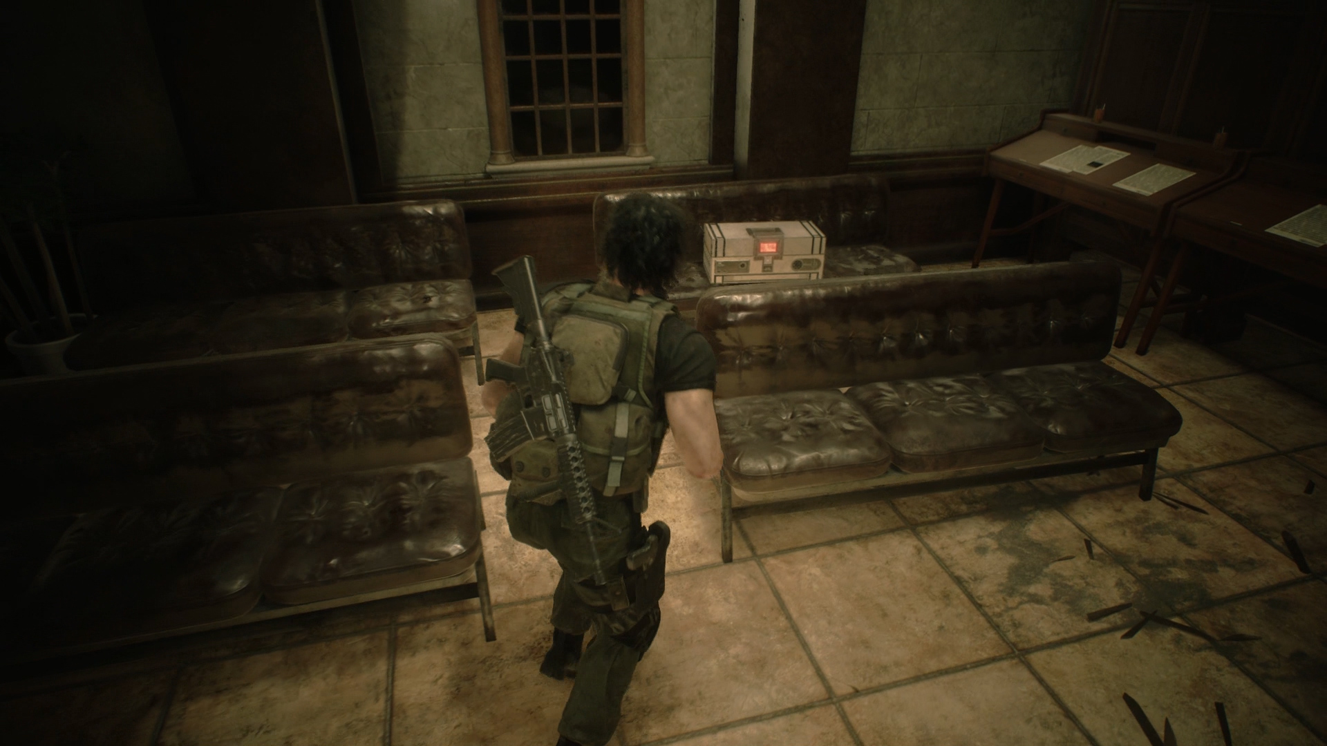 Loker yang berada di lantai 3 ini (3F) bisa dibuka oleh Carlos dengan memasukkan kode kombinasi DCM. Loker ini berisikan Assault Rifle Ammo.