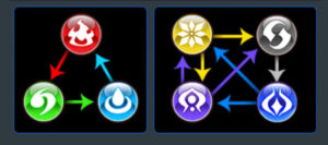Beberapa gear tertentu dan monster memiliki tipe elemen tersendiri dan setiap elemen memiliki kelemahan dan juga kekuatan masing-masing saat menghadapi elemen lainnya. Berikut gambaran ringkas kelemahan dan kekuatan elemen di Unison League: