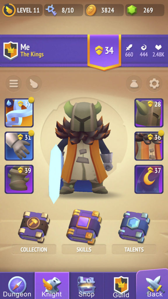 Masing-masing hero memiliki 8 slot equipment yang bisa anda upgrade dengan menggunakan Coin dan Smelt Stone guna menaikkan stat. Semakin tinggi level, semakin banyak jumlah Coin dan Smelt Stone yang dibutuhkan. Setiap 5 level anda perlu melakukan proses Breakthrough agar anda bisa menaikkan levelnya lebih jauh lagi.