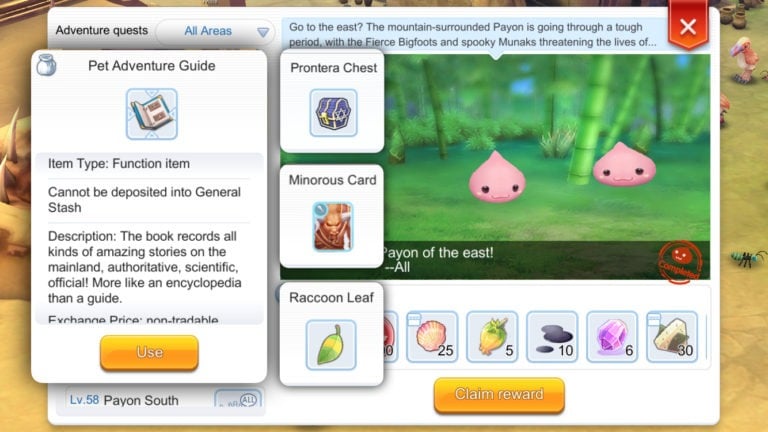 • Adventure Meatball digunakan untuk Pet Adventure dimana anda bisa mendapatkan drop langka seperti Raccoon Leaf dan Card