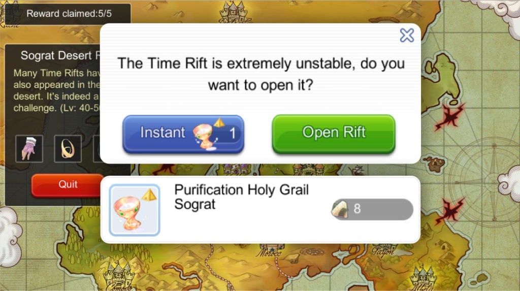 Semakin tinggi level Time Rift, semakin sulit untuk diselesaikan dan memakan waktu yang cukup banyak. Penggunaan Purification Holy Grail akan menyelesaikannya secara instan dan tentu jauh lebih efisien.