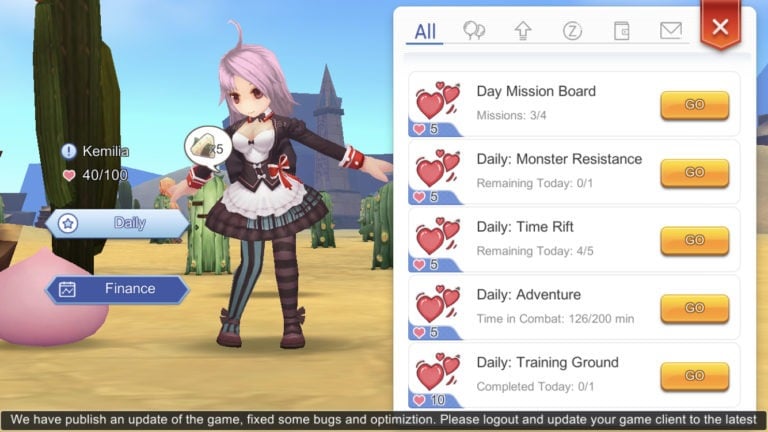 Selesaikan Daily Task yang diberikan oleh Assistant untuk meraih 20 Intimacy Point! Anda akan diberikan hadiah 5 Adventure Meatball setiap harinya. Jangan lupa klik Assistant untuk klaim Reward-nya ya!